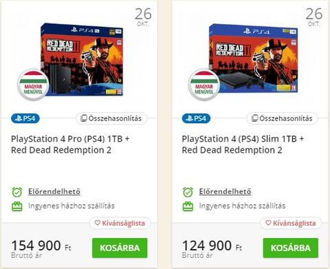 PS4-re jönnek a bundle verziók. RDR2 alapjáték és ps4 pro 1tb vagy slim 1tb van hozzá csomagolva.