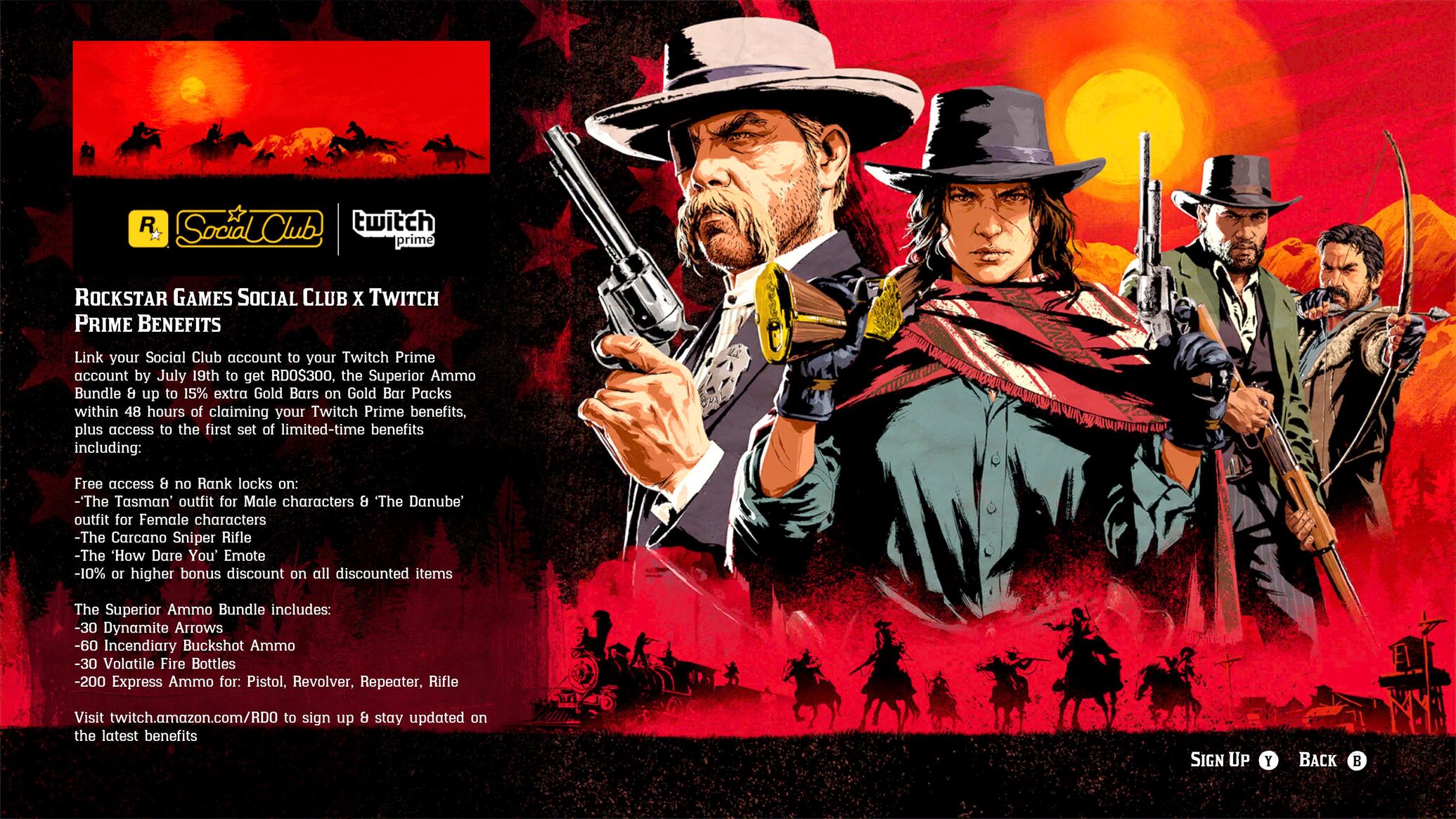 Vagyis ha rendelkezünk Twitch Prime előfizetéssel, és azt összekötjük a Social Club-os fiókunkkal akkor Red Dead Online-ba kapunk 300RDO$-t és egy Superior Ammo Bundle-t és 15% bonusz aranyat az arany rudak vásárlása után