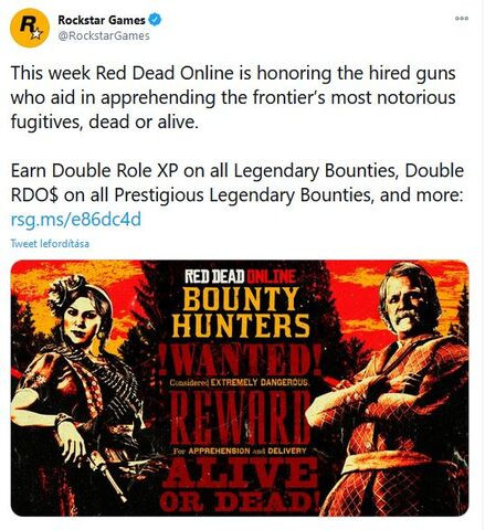 Ez utóbbi ráadásul most kedd délelőttig duplán fizet pénzben és Role XP-ben. Így 5-ösz szinten 30 perc után $450/0.48 Gold/1 500 XP-at, és itt a legtöbb esetben (értsd úgy, hogy elmegyünk mindhárom helyre, megölünk mindenkit, majd elmegyünk a barlanghoz, vagy a kilátóhoz és ott is megölünk/kifosztunk mindenkit), mindig megvan már magával a küldetéssel a 30+ perc. hátránya, hogy kontroller esetében kötelező Free Aim van (az előnye a +20 XP/ölés). Ráadásul most ugye a Role X-re is dupla van a mostani 3 új Legendary esetében így az 3 000 XP-t, Outlaw Pass 65. szintje után pedig 3450 XP-t is ad (amiből 3 már kiadja az új BH award 10 000 XP-t, így 3 után még jön egy extra $100/0.5 arany/500 XP)