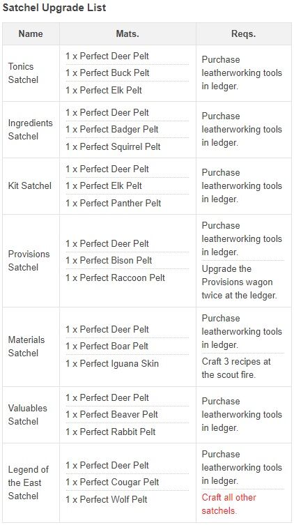 Ezt untam meg pár napja és összevadásztam mindent a Legend of the East Satchel-hez amit Pearson-al tudsz elkészíttetni a táborban. Ezzel minden kategória "slot" 99-re nő.