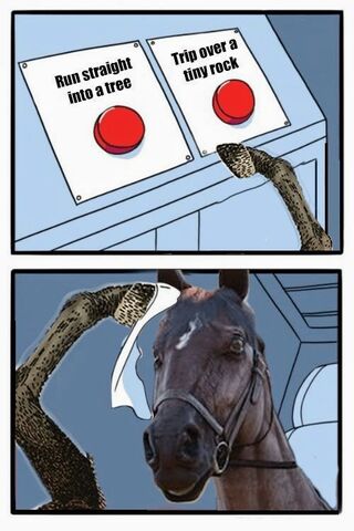 Meg az ehhez hasonló kb megmagyarázhatatlan dolgok. A ló nem hülye és nem egy autó vagy motor sokkal nehezebb nekivezetni valaminek úgy, hogy ő is megsérüljön, de úgy, hogy ha te is el akarsz valamit kerülni annak ő szándékosan pláne nem fog neki menni (frontálisan) ...De még egyszer ez csak érzés, de kb amikor elkezdtem játszani ilyen volt, aztán valamikor állíthattak valamit érzésem szerint (ami lehet csak placebó és nem több) most meg megint olyan mint az elején.