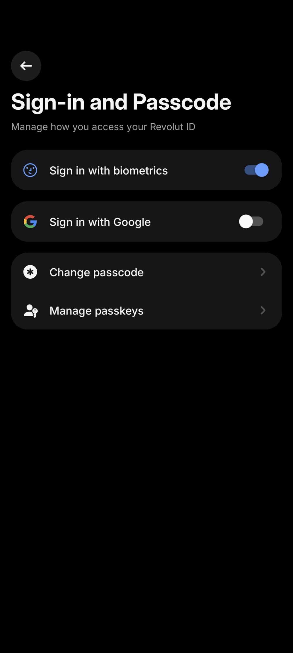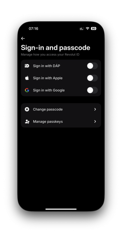 Profile picture - Security - Sign-in and passcode - Sign in with DÁP