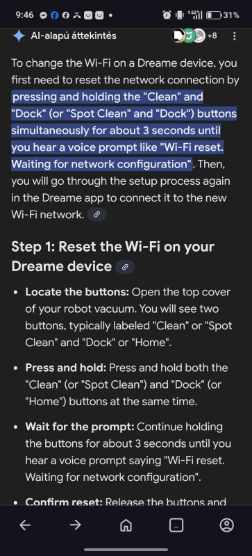 Üdv! Barátomnak van egy Roborock Q7 Bf porszívója. Kb. 1 hónapos. Ma reggel nem indult, csak felhörren és leáll. A fura, hogy sem a reset wifi, sem a factory reset esetén nem mondja be a szöveget, hogy megtörtént. A szervizen kívül esetleg van valakinek ötlete, hogy mivel lehet próbálkozni még? Köszi!