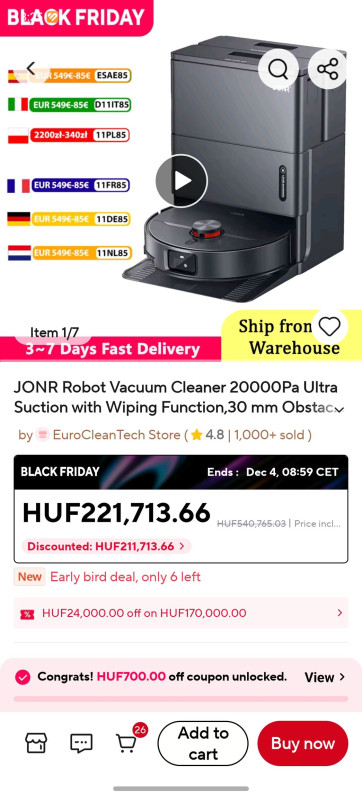 Üdv! Érdeklődnék, hogy bf alkalmából van valami kínai de eu raktárból Best Buy robot porszívó? Meleg vizes mop lenne a cél a porszívózás mellett.. 70nm ból szerintem 30 nm max ami szabad lehet a lakásban szóval. De a lustaság nagy úr..