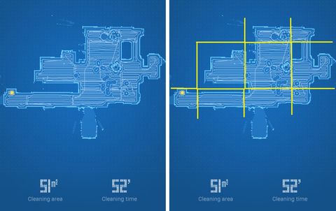 Így inkább csak a lakás kb 65 m2-es egyterű központi részét (előszoba, nappali, étkező, konyha, közlekedők) takaríttatjuk vele automata üzemmódban, a többi helyiség esetében berakjuk a szobába, és rázárjuk az ajtót. Ráadásul azt vettem észre, hogy amikor az egész lakásban dolgozik, akkor csak egyszer megy végig, viszont a kis alapterületű helyiségekben kétszer is végigmegy. A takarítási térképek szerint a nettó 11 m2-es és nagyobb takarítási felületen egyszer ment csak végig, a kisebb takarítási területeket kétszer csinálta meg, nagyon hasonló útvonalon.