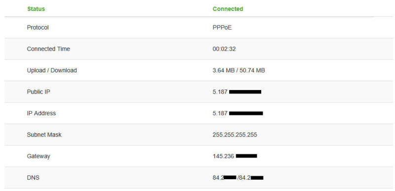 Viszont ha nem Static vagy DHCP-vel kérem az IP-t WAN-ra, hanem PPPoE-vel, akkor látszólag nincs internet, de amúgy van,, megkapok egy publikus IP-t és az összes DNS címet, sőt még a dupla NAT is megszűnik. Viszont egyes okos eszközök pl. BlitzWolf okos konnektorok amik API-n kommunikálnak, nem tudnak kimenni a netre (DHCP, vagy static címmel működik). Nem tudom a router fogja-e meg mert érzi, hogy nincs internet és ne is próbáljátok meg alapon, de elég körülményes így a működés, főleg a dupla NAT miatt.