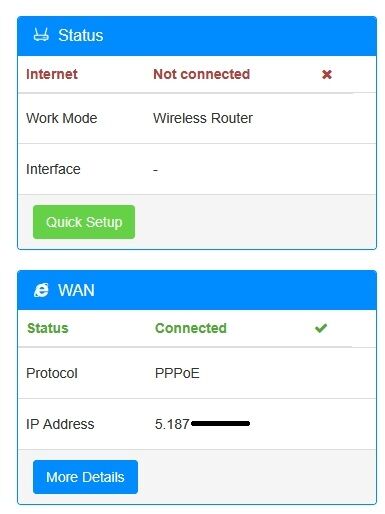Ez a tipp be is jött, a WAN Status -> Connected PPPoE-vel (bár más IP-t látok mint a Telekom modemben, de ez lehet nem gond), viszont a Status Internet -> Internet Not connected. Tehát nincs internet a routeren. Érdekes módon a Wi-Fi-n lévő valamennyi eszköz mégis hozzáfér a nethez, de a többség nem és a router sem (nem tudok firmware update keresést nyomni Cudy-n, azt írja nincs internet).Mi lehet a gond?