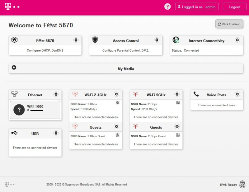 Sagemcom F@st 5670 2.5G port -> Cudy WAN portTelekom modem: