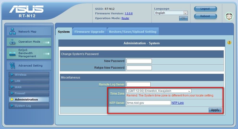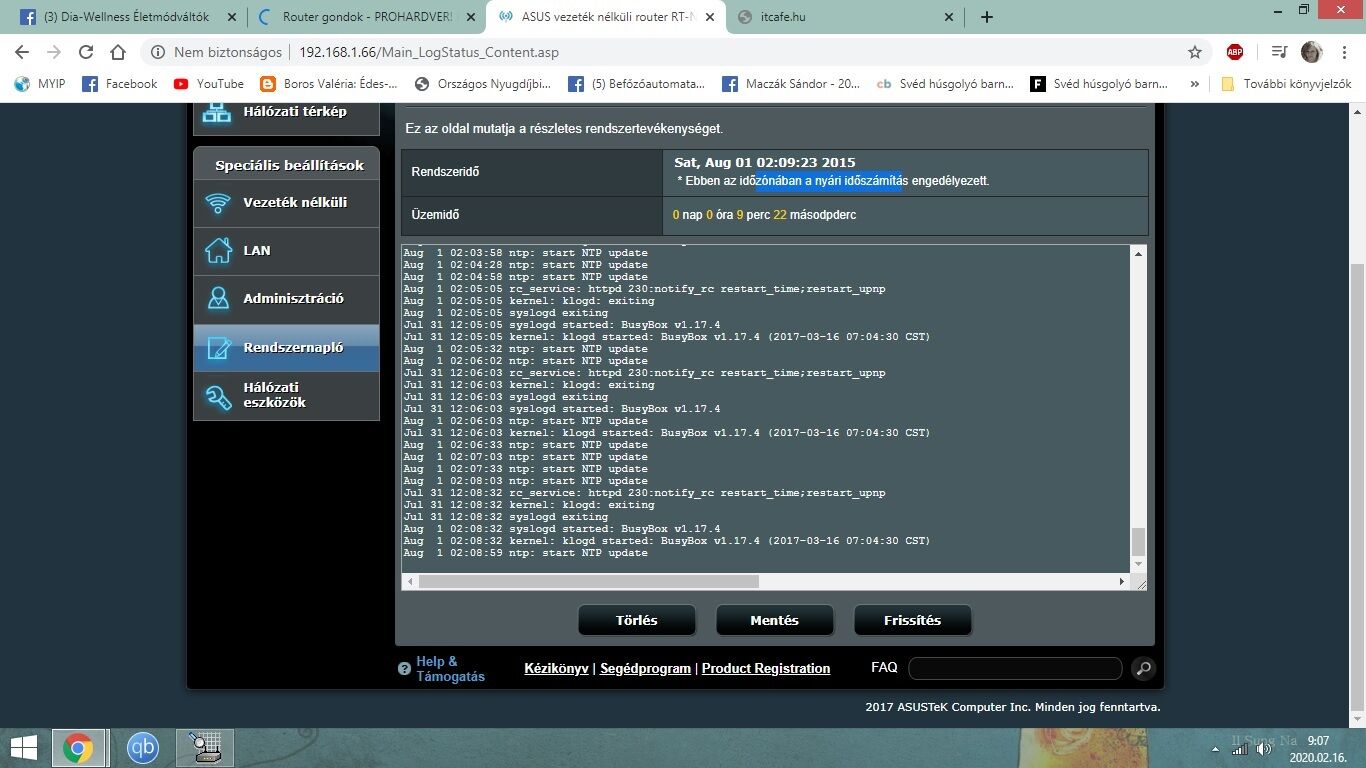 Adott egy asus rtn12+ router ami eddig normal modban ment mert a wifi erősítős mod nem akart üzemelni. Most kicsit utánna néztem és lehet amiatt nem megy mert a router rendszerideje 2015 öt mutat? Szeretném használni kábel nélkül jelerősítő modban van rá lehetőség valahol a dátumot állítani -