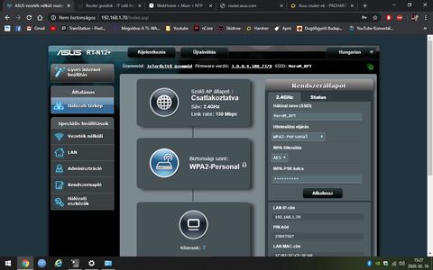 Belépve már az új felhasználónév volt, de még mindig a Leválasztás írt ki.Kapott egy 10 másodperces Resetet az Asus router és újracsináltam a kezdő beállításokat.