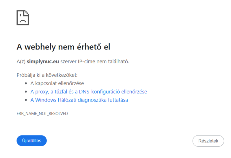 ...vagy ERR_NAME_NOT_RESOLVED hibát kapok, ami még azelőtt eltűnik, hogy el bírnám olvasni: