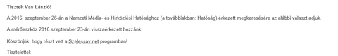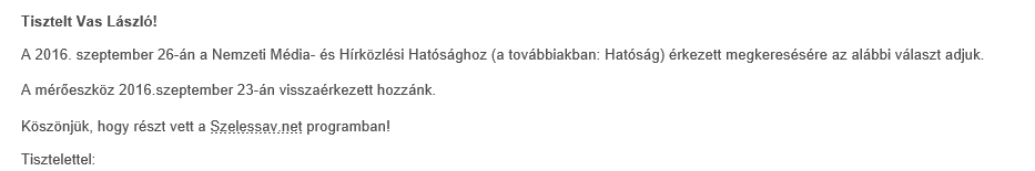Tisztelt NMHH Ügyfélkapcsolati és Tájékoztatási Osztály!