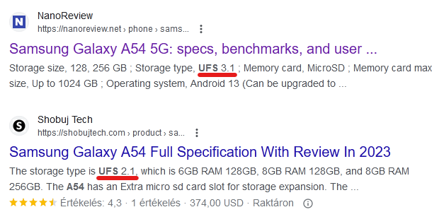 NanoReview oldalán hibásan szerepel az UFS meghatározása , mert ha ugyan ott megnézed a specifikus listában elért memória tesztekre adott mérési pontszámokat , könnyen és egyértelművé teszi azt ami a többi oldalon is látható , azaz UFS 2,1.