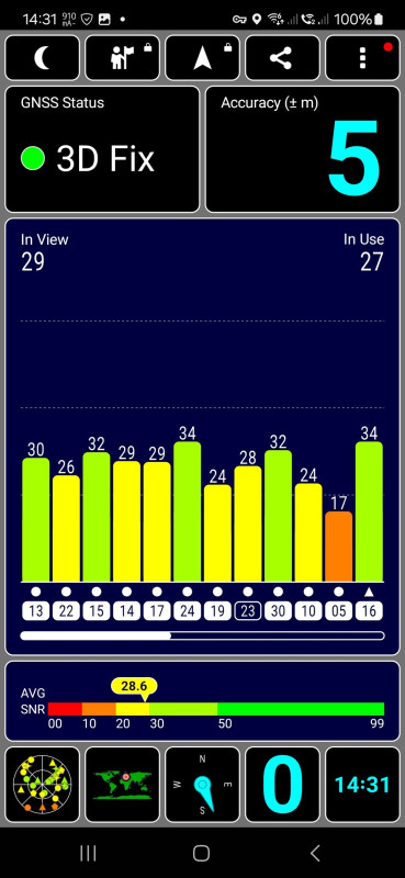 Ránéztem a telefon GPSére a GPS Testtel, 6, 7 méter pontosságot írt ki a lakáson belül, mellé rakva a Xiaomi 11T telefonom 1 azaz egy métert írt ki.
