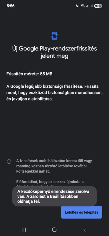 Új google-play rendszerfrissítés letölthető...