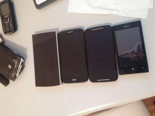 Csak a G2 az enyém, meg a nokia, meg a kis samu bal fent. A 1+1 húgomé (méghogy csajok nem használnak tepsifont, chh) a Motorola G pedig unokahúgomé (szintén zenész barátnőmmel eggyütt akinek szintén LG G2-je van) . Dual sim amúgy, tuti kis teló, de magyar nyelv az nincs benne. 175€