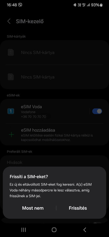 Így néz ki. Nincs fizikai SIM kártyám csak eSIM-em. -