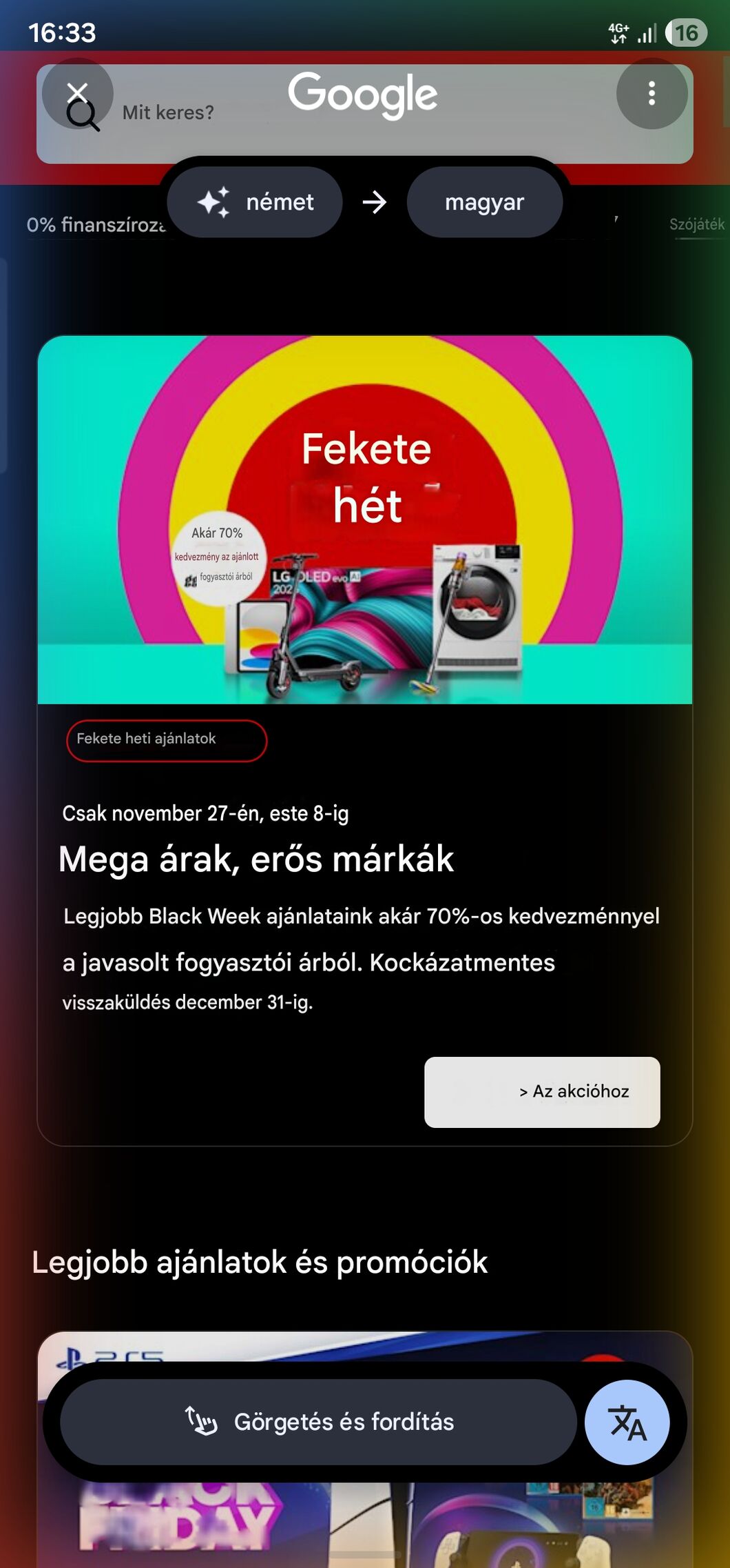 Igen, ezzel hogy görgethető a fordítás, lehet lapozni, és egész oldalakat fordítani, jobb a Google. Sőt lehet szörfölni további oldalakra változatlanul tovább fordítva mindent, ez már bőven veri, szinte nem összemérhető az S-Pen megoldásával.