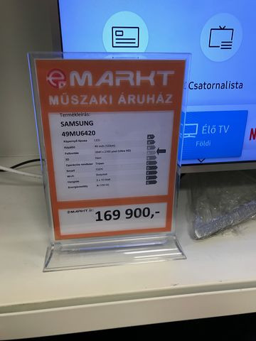 Srácok jelentem megvettem végül az ue49mu6452-t. Bevallom az MM-ben a 6102-nek is ugyanolyan(nak tűnő) szép képe volt, ami idebillentette a dolgot az az anyaghasználat, és a két tv egymás mellett ugyanazzal a műsorral: ennek a feketéi kissé mélyebbek voltak. De ezt inkább nem is tekintem relevánsnak..