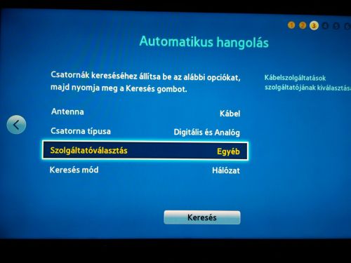 A szolgáltató választás, gondolom FW verzió függő... no mert nekem pl. csak UPC és egyéb jelenik meg, az egyéb után pedig már nincs semmi szolgáltatóval (Digi) kapcsolatos választás, elindul a hangolás. (vagyis még manuálisan meg lehet adni a hangolási paramétereket, de mást nem)