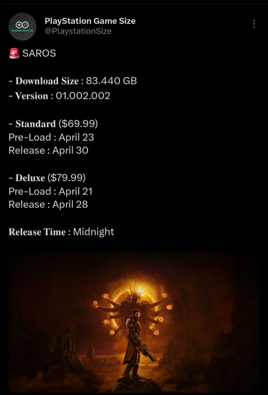 "Beneath a haunting eclipse, survive Carcosa’s shifting dangers, master bullet ballet combat, and come back stronger after every death in Housemarque’s next evolution of third-person action. Starting Rahul Kohli, SAROS releases for PS5 on April 30, 2026. Pre-order SAROS Digital Deluxe Edition now for 48-hour early access."