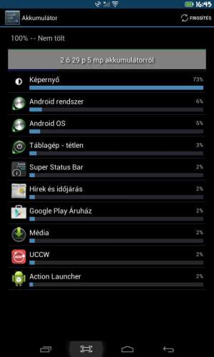 Utána szintén 100% -on volt, úgyhogy elkezdtem vele wifi -n böngészni, kb. 10 perc után esett le 99% -ra, tehát úgy tűnik valós az adat. Töltöttem le 2 cuccot Play -ből, meg egy kicsit keresgéltem, egy idő után lement 98% -ra. Így tehát működik rendesen, úgy néz ki.