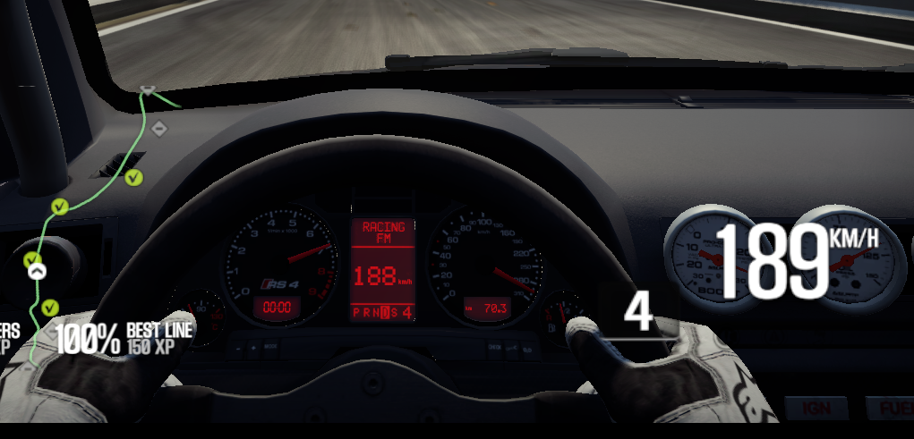Nem az a ludas, hanem az, hogy nem lineáris a kilométer óra az RS4-ben. Kb a feléig van a 100 és a maradék fél mutató út meg plusz 200 km/h-t jelent. Ezt nem sikerült megoldaniuk a műszerfal nézetben. Egyébként 100-ig jól működik, ezért sem lehet a mph váltás az oka.