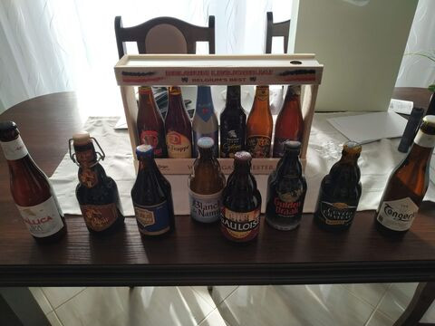 Ezek a belga sörmestertől lettek rendelve, ahogy nézem. Nincsenek nagy csodák, ahogy proci is írta és amiket itt a fórumon is dícsérni szoktunk: chimay, delirium, la trappe oké, a többi pölö satan, barbar Sparban, Auchanban kapható átlagos belga serek, amik magyaroknak még így is jó