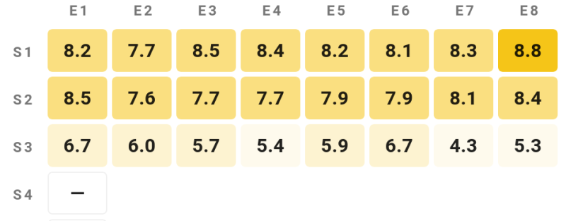 Anno azt mondtam a 2. évadra hogy durva lejtmenet, hát ez a 3. a stagnálás jeleit mutatta csak. Persze lehet elértünk az aljára, de mindig lehet még gagyibbat csinálni. Ebből az évadból hiányzott bármiféle ötlet, újdonság, kreatív dolog, szerintem a készítők is úgy voltak vele hogy nesze fanservice azt örüljél.