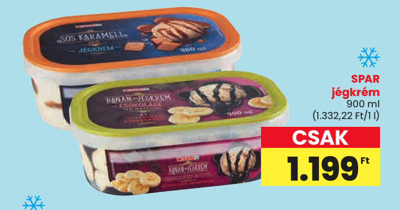 Spar, Interspar üzletekben csütörtöktől akciós lesz a saját márkás jégkrém, ami alap áron 1600 ft körül kapható (annyit nem ér, de olcsóbban már elég jó vétel szerintem)