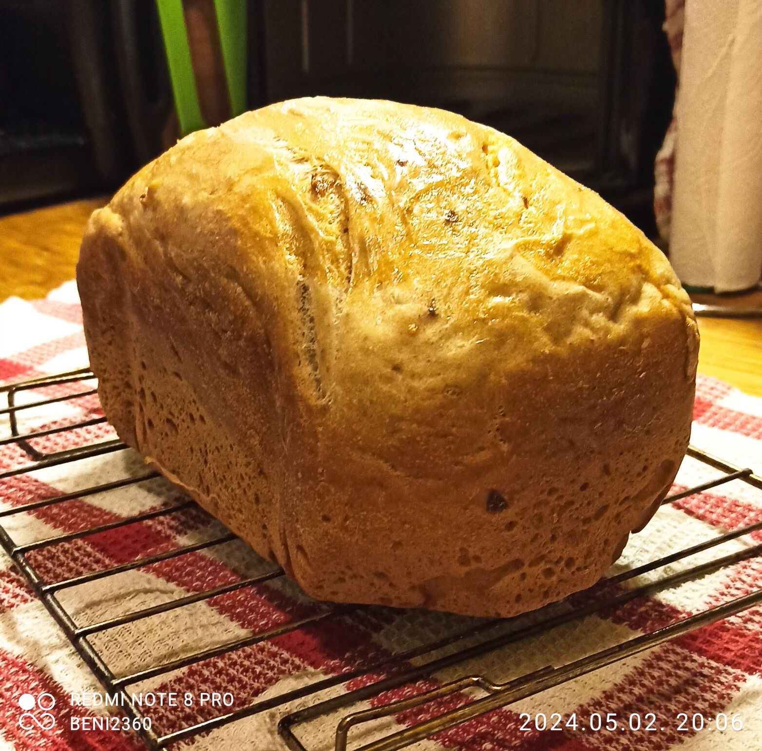 Na hogy a gépi kenyérhez hozzá szóljak a kézfejemet 8 napja műtötték és ideglenesen át álltam a gépi sütésre. Vettem 10 e Ft egy C1-s SilverCrest és finom kenyereket sütöttem. Igaz a hagyományos kenyérsütést vettem segítségül. A mai 80 dkg-s kenyerem.