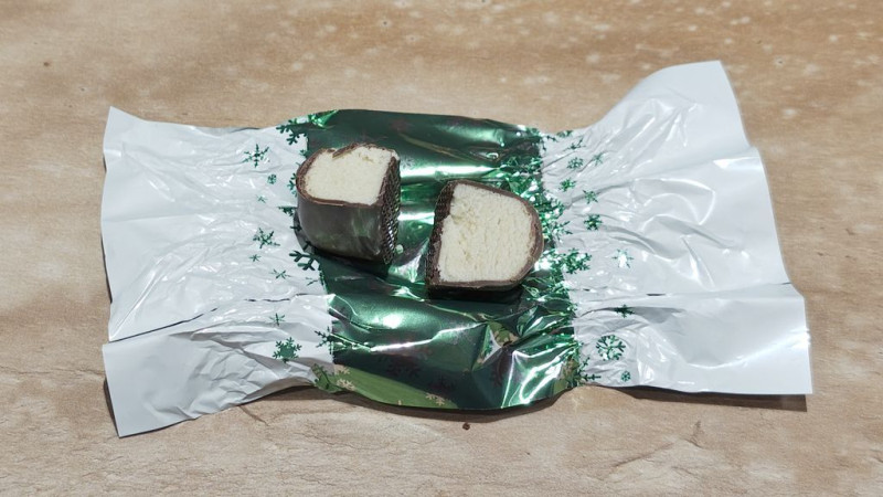 Pennyben kimért etcsokis zöld színű marcipanos, a csoki rendben a belseje túl émelygős és túl aramás. Köze sincsen a marcipánhoz.