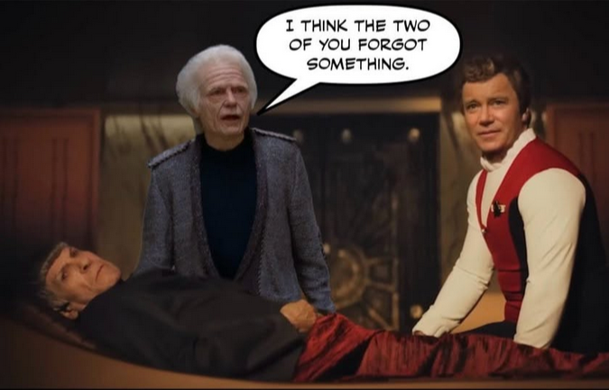Úgy rémlik, hogy Leonard fia tisztázta a helyzetet Shatner-rel, de ő ezt nyilván azóta is bánja.Shatner már 90 körül jár, és úgy tűnik van még egy-két dolog, amit le akar zárni.