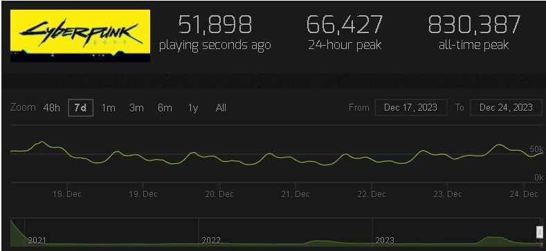 Az mindenesetre beszédes, hogy 3 hónappal a Loading Screen Simulator megjelenése után a három éves, sírból visszahozott Cyberpunkkal 4x annyian játszanak.