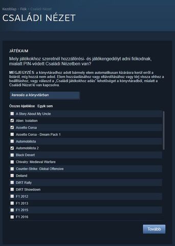 Pontosan ebben kértem segítségeteket, a szomszédos szobában lévő laptopnak szeretnék jogosultságot adni, hogy hozzáférjen az asztali gépen használt Steam fiókom játékaihoz, és fordítva, nem pedig egy uzbegisztani fiók tartalmát akarom megosztani magammal