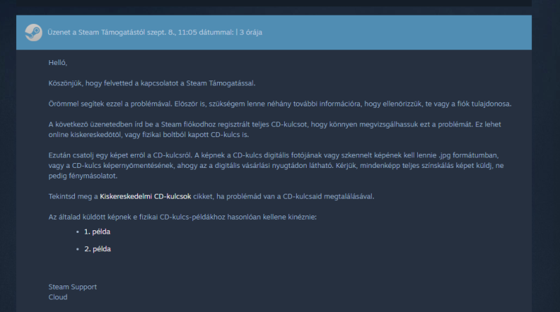 Steam válasza: