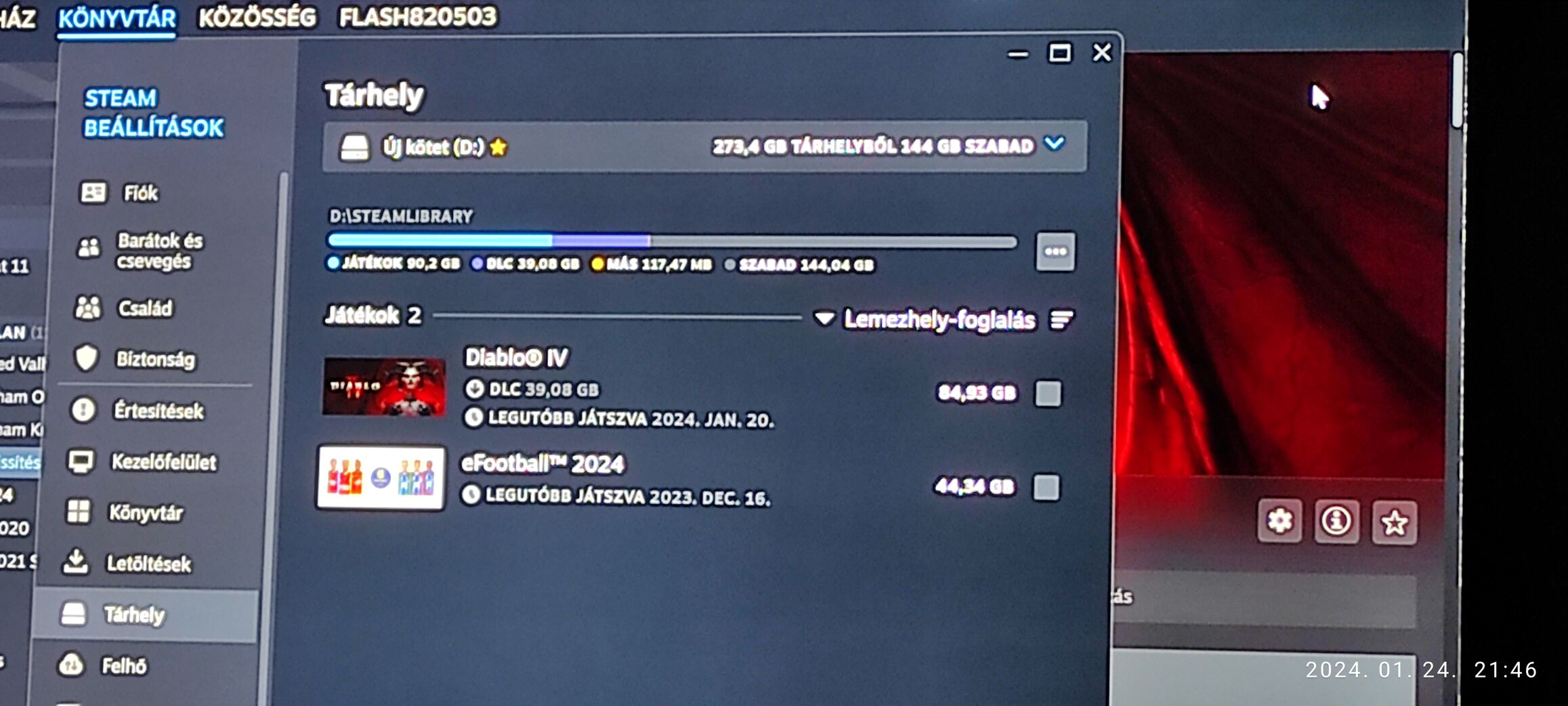 pl D meghajtón van a játék (Diablo 4) és folyamat a c download ba tömi a frissítés letöltést ott meg elég szépen fogy a helyem pedig a D meghajtón is van download mappa. -