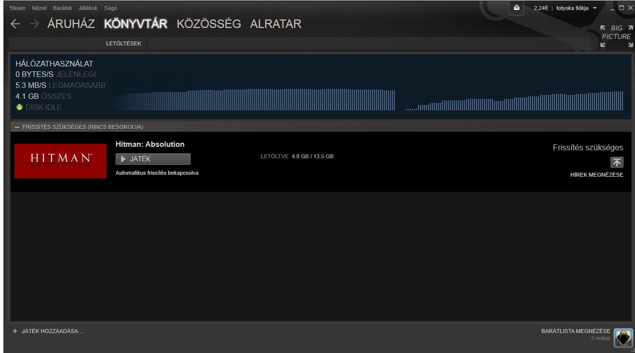 A könyvtar menüben a baloldali oszlopban a minden jatek alatt ott van az egy szem jatekom amit telepitettem es ezen kivül meg a következök is: Company of heroes 2 - 9ora maradt es