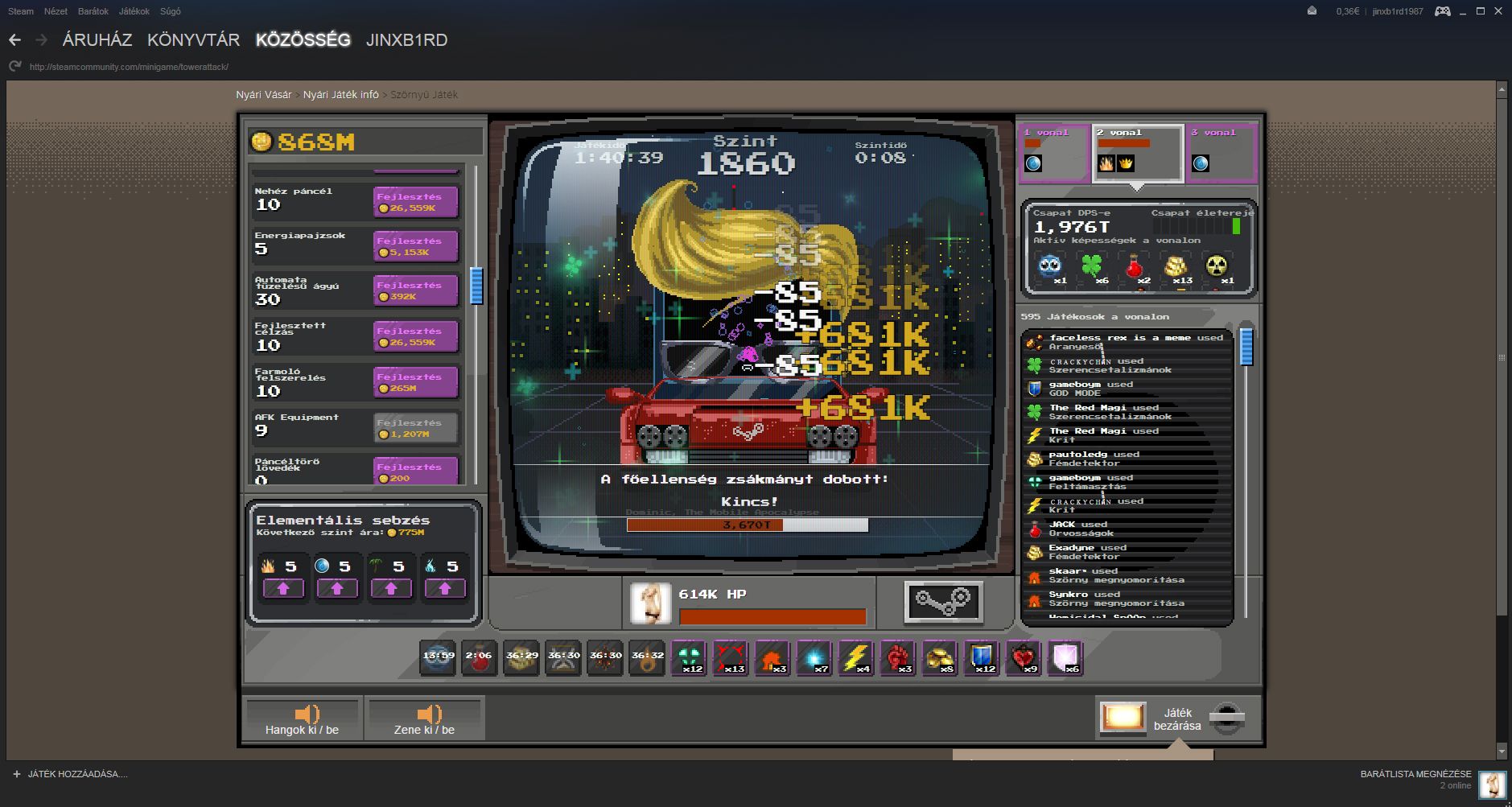 Végre gyors kattintgatós csapatba kerültem, 22 perc alatt lvl 212. Az előbb meg 22 óra alatt lvl 590...