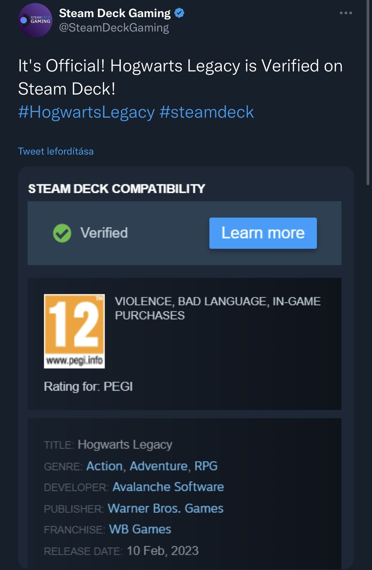 Pont tegnap néztem, hogy ez volt 2022-ben a legtöbbet játszott játék decken.