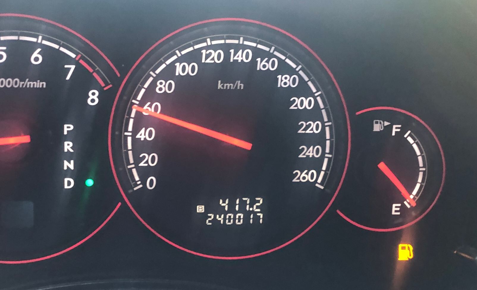 Csatlakoznék én is, ha már erről van szó, mert a szeptemberi Nyíregyházi LEGO Gyárlátogatásra menet lépte át a bűvös 300.000-t a paripa. Párom vette észre 298-nál, hogy hoppá, minrdjárt (ciki, nekem fel se tünt), és szerencsére gyorsan előkapta a telefont, betette elém, meg csinált videót is pont mikor átléptük.