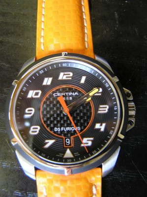 Többet valószínű, hogy nem vásárolok e-bay-ről, mert a Certina-val is belegeltettek. Mint kiderült, sárga fénnyel világították meg a számlapot, így úgy tűnt, mint ha csak kicsit volna patinás. Élőben kiderült, mehet ez is P.Kiss-hez. Persze, neki nincs, csak sima Certina felirata. Találód kérdés: Ki tudja, mi a különbség a Certina, és a Certina NACAR között?