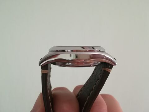 Felteszek pár képet, hogy lásd hogyan áll egy LTL 46,5mm óra és egy képet a tokról oldalról, hogy lásd mire gondoltam amikor azt mondtam, hogy lefele kerekedik.