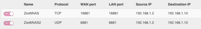 Destination IP: a NAS IP címeViszont a Protocol-on is lehetne állítani. A 16881-en engedélyezni kellene az UDP-t és a TCP-t is, mert a uTP-hez kelleni fog az UDP. A 6881-et csak a DHT-hoz használja, ha nyilvános tracker-ön torrentezzel, akkor maradhat, de ha priváton (pl. ncore), akkor ezt felesleges megnyitni, Download Station-ben is kikapcsolható.