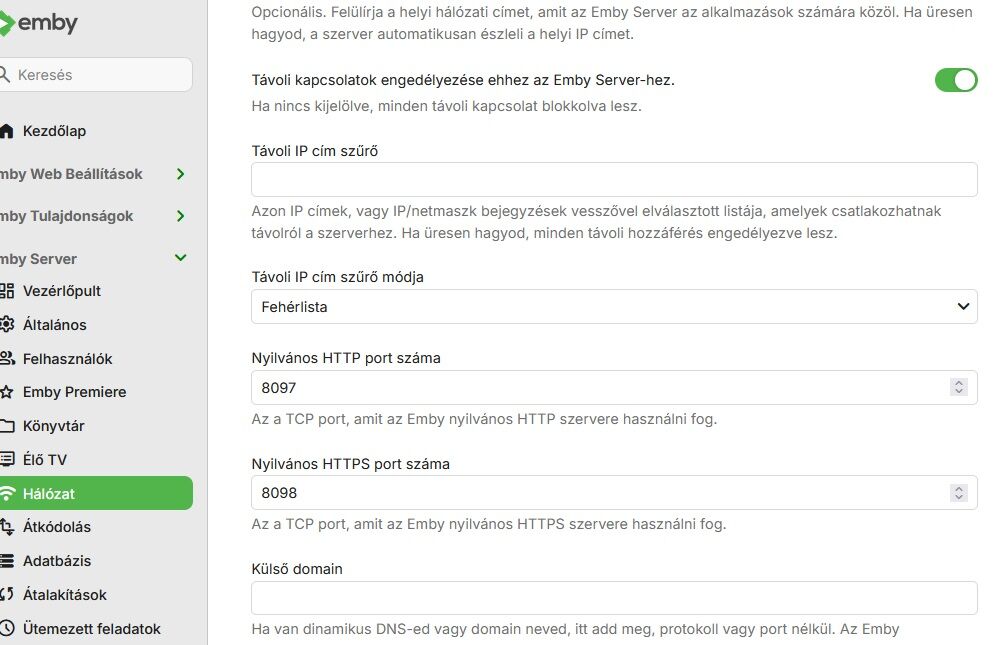 Most az Emby kliensekben 8097-es portot használhatsz, a Jellyfin kliensekben továbbra is a 8096-ot. Mehet egyszerre mindkettő.