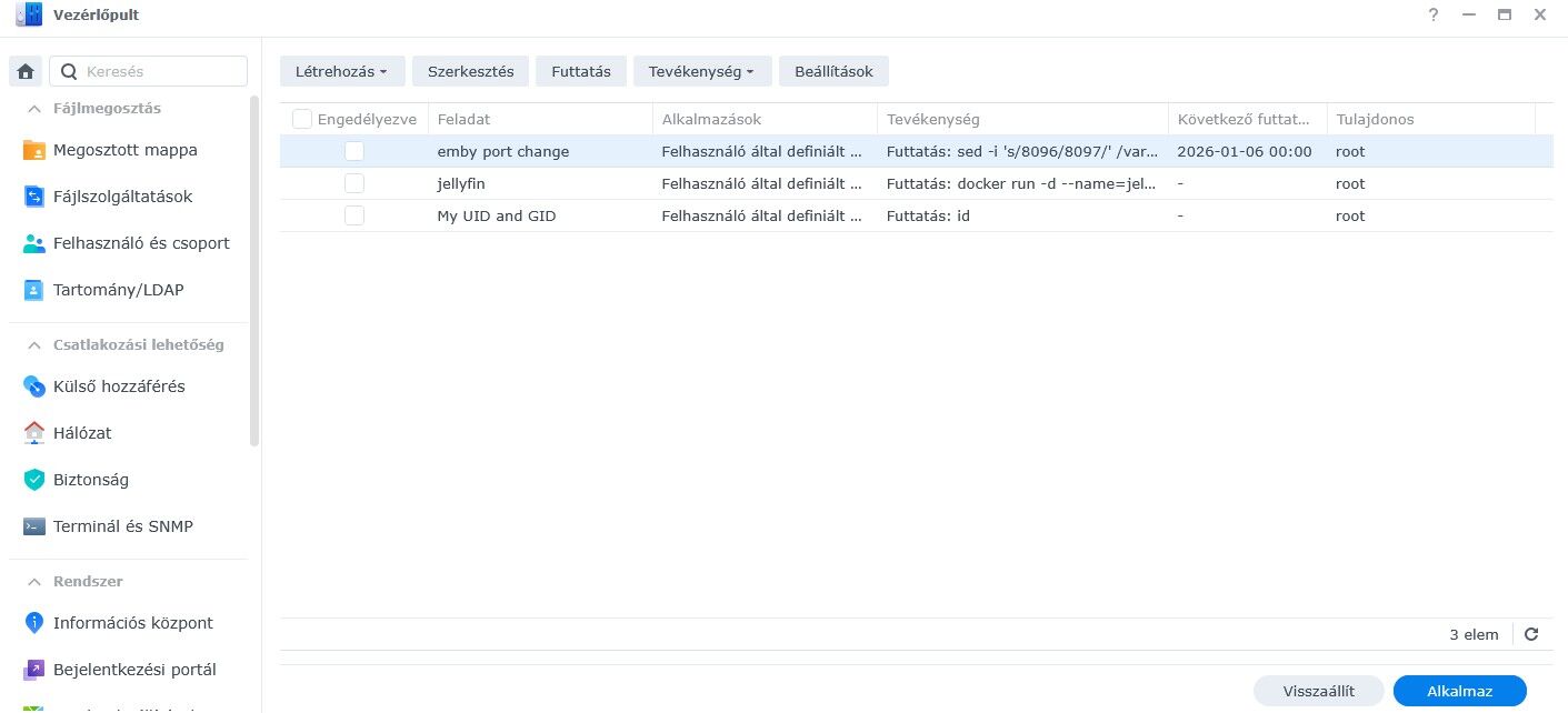 Feltételezem, hogy akkor ott is van egy Emby nálad, legalábbis arra adtam a feladatütemezős scriptet."Azt, hogy lefuttattam-e a scriptet, hol látom?"