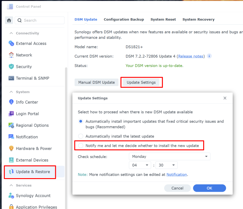 Megjött a 7.2.2 Update 4 DSM frissítés (csak biztonsági javítások)
