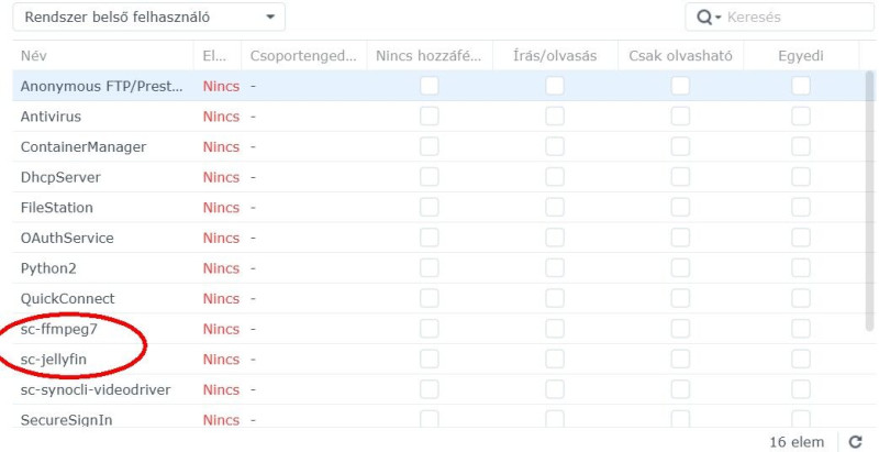 Ott egy sc-media (DSM6) vagy sc-jellyfin (DSM7) beépített felhasználónak kellene lennie.Kipróbáltam, DSM 7.2-nél így néz ki: