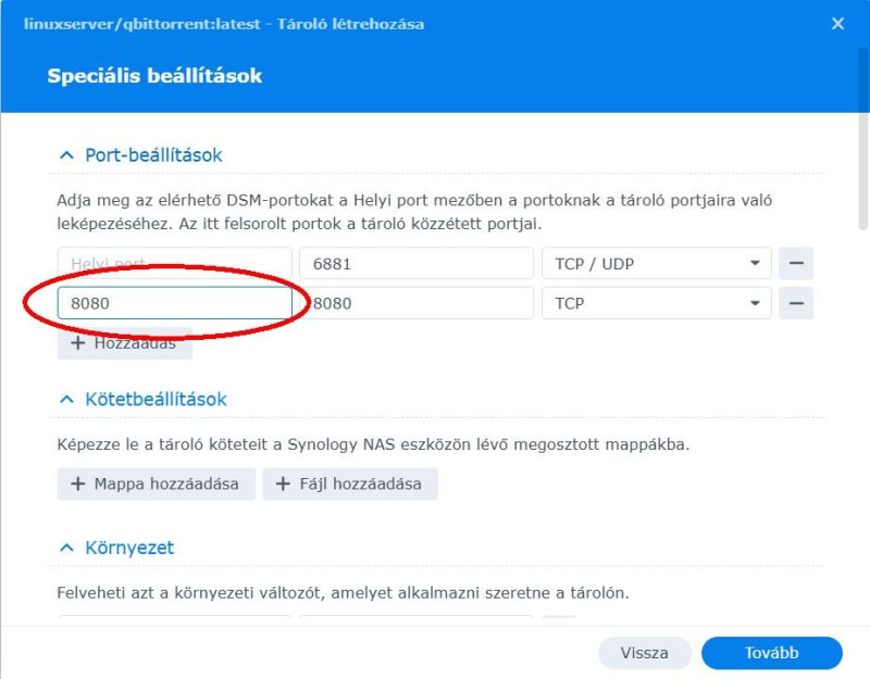 Ha nem akartad megváltoztatni, csak üresen hagytad és automatikusan választotta a 32773-at, akkor a legegyszerűbb, ha kézzel beállítod a 8080-at.