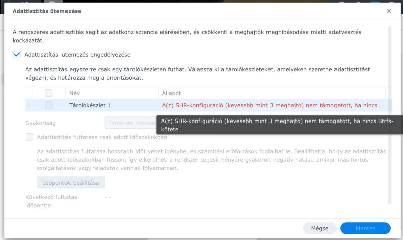 A megoldás már 10 napja megvolt, de csak mostanra állt helyre a backup, és pár napig még teszteltem is, a biztonság kedvéért.A környezet: DS918+, 2×7,68 TB SSD és 2×8 TB HDD, DSM 7.3.1.